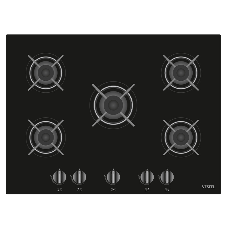 5. Vestel 5 Burner Black Glass Gas Hob (75 cm)