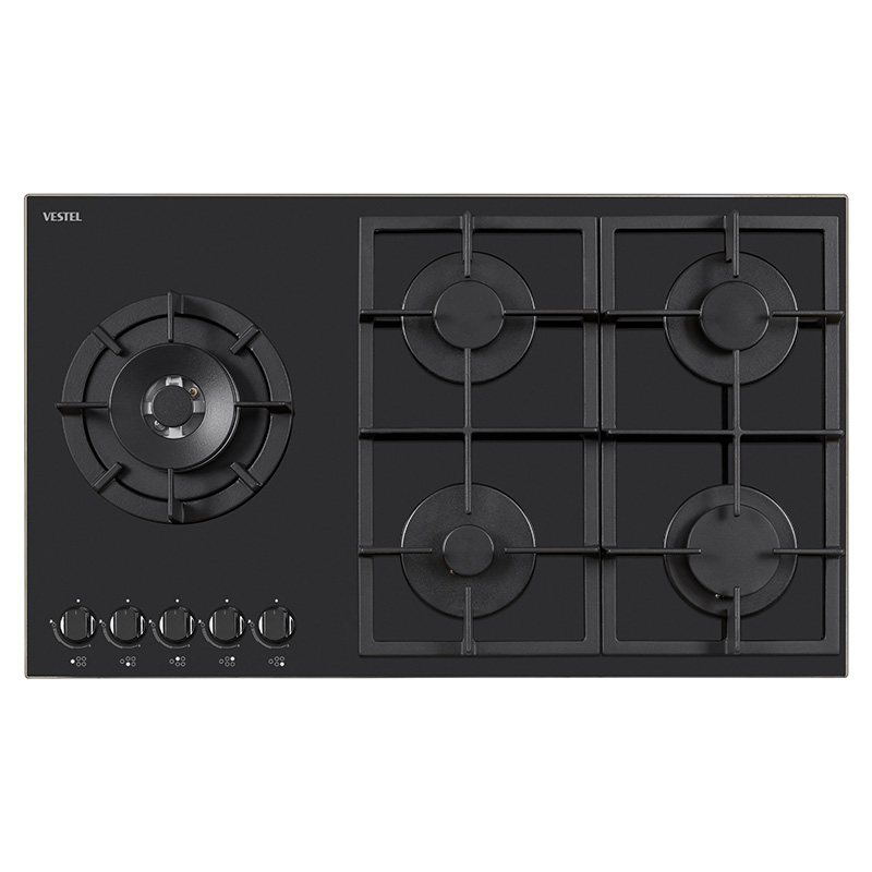 2. Vestel 5 Burner Black Glass Gas Hob 90 CM